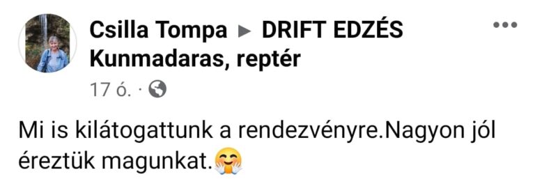 Nagy-Bódi Angéla „olyan régóta vágyott a driftre, hogy most, amikor megvalósulhatott, élete értelmévé vált. Sírt is örömében.” Külön élmény számára a közösség, amibe bekerülhetett, és amiért nagyon hálás.