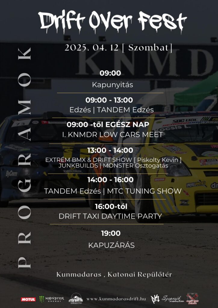 Izgalom, sebesség és látványos autós driftshow várja az érdeklődőket a kunmadarasi reptéren, ahol immár harmadik alkalommal kerül megrendezésre a DriftOverFest!
